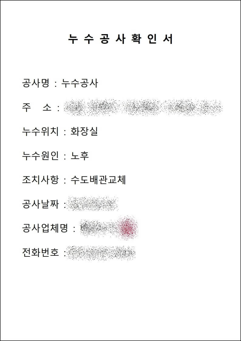 누수 수리 후 보험처리 방법