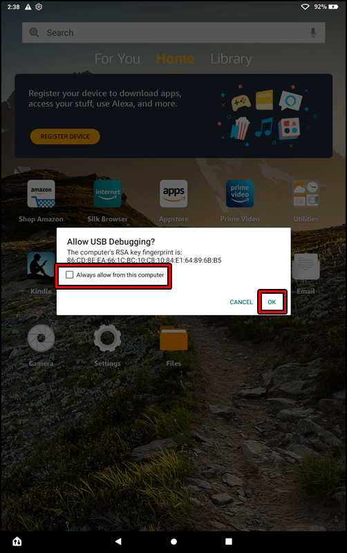 fire HD를 컴퓨터에 연결해주시면 위와 같은 확인창이 나옵니다.